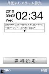 目覚まし設定をタップすると、目覚ましアラーム設定画面が表示されるので、詳細設定をタップします。