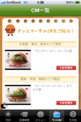 モスCMをタップすると、それぞれの地域で放送されているCMの動画を見る事が出来るようになっています。