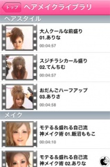その他に、ヘアメイクライブラリをタップすると、ヘアスタイルや、メイクなどの動画を見る事が出来るようになっています。