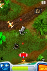 デフォルトでは、本体を傾けて飛行機を操作し、自動射撃で敵を破壊していきます。