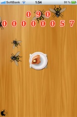 ゲームをスタートすると、中央に置かれたホットケーキ目掛けてハエが飛んでくるので、直接画面をタップして、ハエを退治していきます。