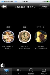 Shakeを選択して、本体を振ると、合計21個のレシピの中からランダムに3品が選ばれます。
