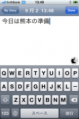 2008年09月02日(火) iPhone App Store#iPhone_3G#iPod_touch#My_Diary iPhone 3G用日記アプリ「My Diary」を試す。 ※本サイトは、アフィリエイト広告および広告による収益を得て運営しています。購入により売上の一部が本サイトに還元されることがあります。 My Diary My Diaryが、iPhone/iPod touch用日記アプリ「My Diary」をApp Storeにて、115円で販売を開始したので、さっそく試してみました。 日本語入力にも対応してるだけでなく、入力時のフォントサイズが大きめで良い感じです。 ToDoソフトに、日付と時間が標準で付いただけとも思えます。日付の編集とか、月、週とかでまとめられるともっと良いのにな?と思いました。 ↓の評価ボタンを押してランキングをチェック!