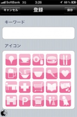 キーワードは、画面下のプラスボタンをタップする事で、好きなキーワードとアイコンを登録することが出来るようになっています。