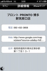 これは、iOSのマップの場合、お店情報のオリジナル情報サイトが表示され、Safariからだと、検索されたお店情報を選択する事で地図が表示されますが、ブクマップは、PCのGoogleマップ検索のように、先に地図が表示されて、その後にお店情報を見るという流れで検索することが出来るので、分かりやすいです。