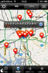 映画館タブでは、現在地情報を元に、Googleマップ上に映画館情報が表示されます。