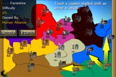 攻められるのは、隣接する領地のみで、敵側の難易度レベル(Difficulty)を確認し、低い順に攻めるのが良いと思います。