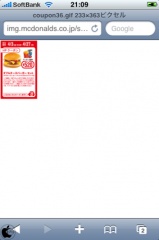 iPhone/iPod touchのSafariからアクセスすると画面が表示されるので、クーポンリストから、マクドナルドかロッテリアをタップします。