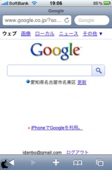 Safari for iPhoneの検索窓からではなく、一旦Googleサイトにアクセスし、画面を下にスクロールして、ログイン画面からGoogleアカウントを利用してログインすると、検索ウィンドウの下に現在地情報を取得する更新テキストが表示されます。