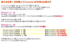 また、Mac本体、iPod、iPhone、iPad、ほかApple純正の周辺機器(イヤホンやケーブルでもOK)と同時購入でiTunesCardが20%オフで購入出来るキャンペーンも開催しています。