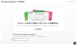 iTunes Storeから「iTunes Card/コードを使う」をクリックすると、コンピュータのカメラを使ってギフトカードを使用するの表示に変わります。