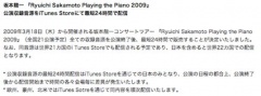 エイベックス・マーケティングが、2009年3月18日より開催される坂本龍一 ピアノ・ツアー「Ryuichi Sakamoto Playing the Piano 2009」全公演の収録音源を、iTunes Storeを通じ、公演終了後最短24 時間で販売すると発表しています。