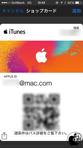 Passbookの中からiTunes Passを開くと、スペシャリストがそれをスキャンして、入金を受け付けます。