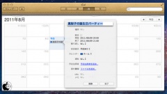 2011年08月09日(火) Mac OS X#iCal#OS_X_Lion#クイックイベント OS X LionのiCal機能「クイックイベント」は月表示の場合のみダイレクト入力可能 ※本サイトは、アフィリエイト広告および広告による収益を得て運営しています。購入により売上の一部が本サイトに還元されることがあります。 クイックイベント OS X LionのiCal機能として、「午後8時に真梨子の誕生日パーティー」や「良夫とランチ」といった普通の文を入力するだけで、文から名前、時間、場所を読み取り、イベントをクイックに追加する「クイックイベント」機能が追加されています。 この機能は、ツールバーにある追加(+)ボタンをクリックすると利用することが出来ます。 追加(+)ボタンからのクイックイベントは、日表示、週表示、月表示、年表示のどれでも利用出来ますが、月表示の場合、カレンダーの日付を選択して「午後8時に真梨子の誕生日パーティー」といった文章をペーストすると「クイックイベント」が利用出来ます。 ↓の評価ボタンを押してランキングをチェック!
