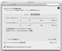 もし、MacBook Air(Late 2010以降)、MacBook Pro (Retina Mid 2012)で、省エネルギー設定に該当項目が無い場合は、SMCファーウェア・アップデートが必要になります。
