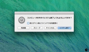 OS X Mavericks:電源ボタン押しでスリープではなく、再起動/システム終了ダイアログを表示するには1.5秒長押しする