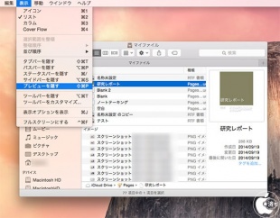 OS X Yosemite:Finderのリスト表示オプションだった「プレビュー表示」が標準メニューに移動