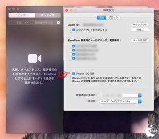 iOS 8がインストールされた、iPhone が近くにあって、同じ Wi-Fi ネットワーク上にあり、同じ Apple ID で iCloud および FaceTime にサインインしていれば、OS X YosemiteがインストールされているMacから、電話をかけたり電話に出たりする子機利用ができるようになりました。