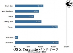 OS X Yosemite ベンチマーク(約1割以上性能アップ)