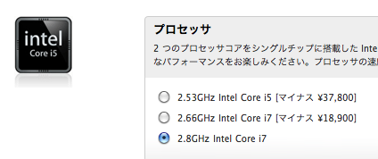 MacBook Pro (17-inch, Mid 2010)のB.T.O.として「2.8GHz Intel Core i7」を追加しています。