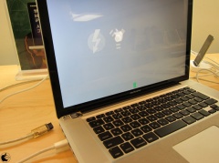 MacBook Pro (Early 2011)シリーズから採用された、インテルとAppleとによって開発されたテクノロジー「Thunderbolt」ポートに関して、MacBook Pro (Early 2011)シリーズで、ターゲットディスクモード(Tキーを押しながら起動)で電源を入れると、従来のFireWireマークに加えて、Thunderboltマークが表示されます。