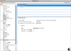システムプロファイラでThunderboltを見てみると、ソケットで装置が接続されていないと表示がされています。やはり、Thunderboltディスクの利用は、Mini DisplayPortケーブルではなく、Thunderboltケーブルが必要だということが確認出来ました。