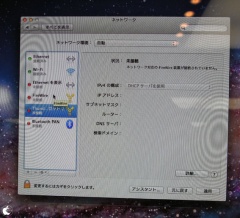 また、OS X Lionのシステム環境設定>ネットワークを見ると、Apple Thunderbolt DisplayのGigabit Ethernetと、Thunderbolt経由で繋がったFireWireスロットポートが認識されています。