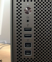 フロントに、ヘッドフォン端子、USB 2.0ポート2個、FireWire 800ポート2個装備されています。