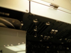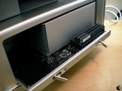 アップルのサイト上にあるMac Pro (Early 2009)のギャラリーにある画像を比較してもらえば分かると思いますが、アップルのサイトにある画像は、8 Core Xeon 5500仕様で、今回発売が開始された4 Core Xeon 3500採用モデルと、このトレイユニット上にあるボードとは、デザインが異なることが確認出来ると思います。