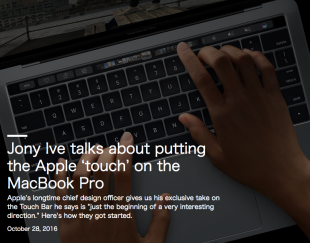 CNETが、Appleのチーフデザイン責任者シニアヴァイスプレジデントJony Ive氏に、MacBook Pro (Late 2016)シリーズについてインタビューした「ジョニー・アイブ氏、「MacBook Pro」の新機能「Touch Bar」開発秘話を語る」を公開しています。(原文)