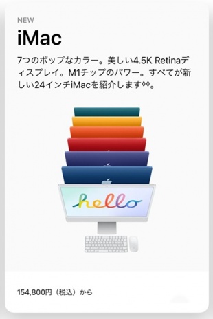 ・iMac (24-inch, M1, 2021)/8GB/256GB SSD/7 Core GPU 154,800円