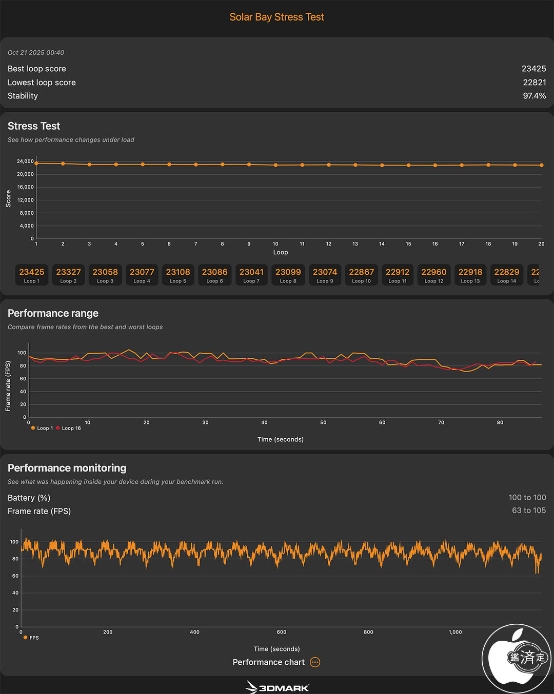 最高ループスコア「23425」、最低ループスコア「22821」という結果でした。