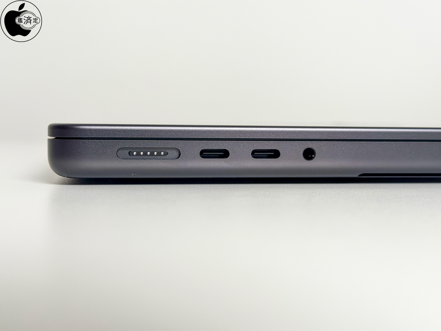 MacBook Pro (14-inch, M5 Pro, 2026)の左側面ポートは、Thunderbolt 5/USB 4ポート 2つMagSafe 3コネクタ、ハイインピーダンスヘッドフォンに高度に対応する3.5mmヘッドフォンジャックが装備されています。
