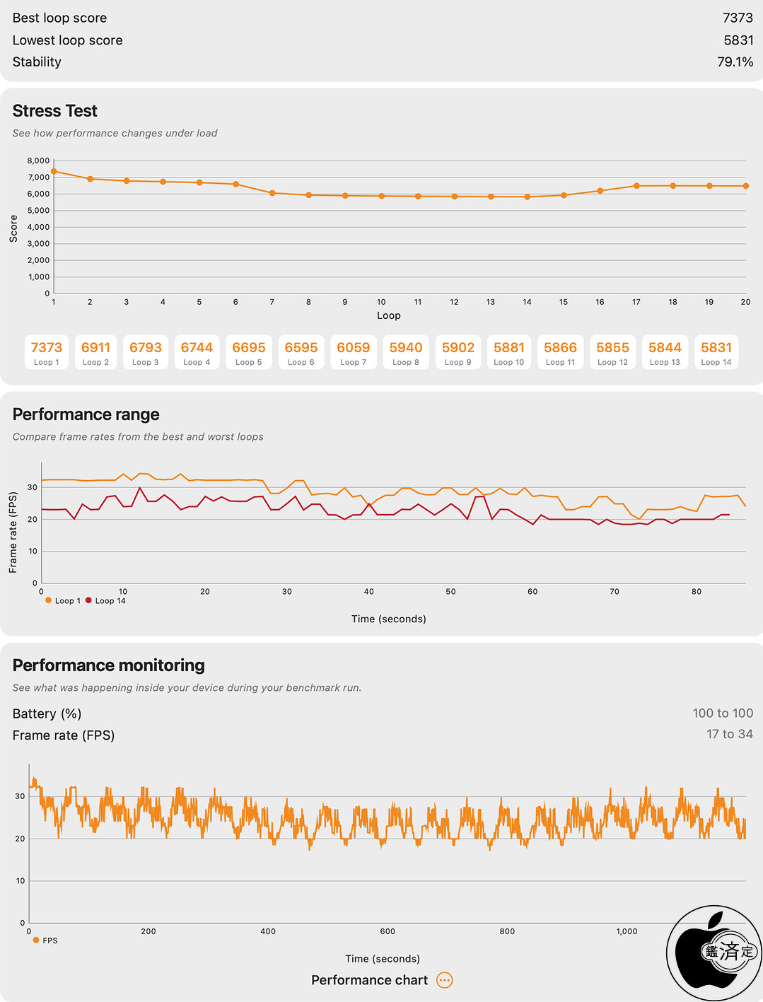 最高ループスコア「7373」、最低ループスコア「5831」という結果でした。