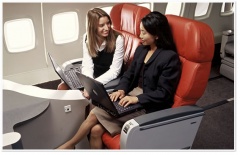 ボーイング777型機で、日本=ヨーロッパ、日本=アメリカ路線で順次拡大する予定だそうです。