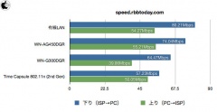 比較機として、IEEE802.11n準拠 300Mbps(規格値)無線LAN Gigabitルーター「WN-G300DGR」、Appleの「Time Capsule 802.11n (2nd Generation)」(5GHz帯を使用)に加え、有線LAN接続でも行っています。