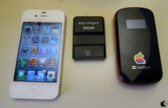 iPhone 4S、ULTRA WiFi SoftBank 007Zと並べてみると、いかにWN-G150TRが小さいか分かると思います。