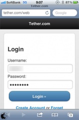 次に、iPhone 4SのSafariから「tether.com/web」にアクセスして、tether.comで作成したユーザーネームとパスワードを入力します。