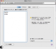Mac OS Xのシステム環境設定>言語とテキスト>言語タブで最上にEnglishをドラッグして移動し再起動します。