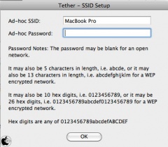 OKボタンをクリックして、ローカルネットワークの作成が完了すると、設定したSSIDの前に「tether:」が付いたWi-Fiネットワークが作成されます。