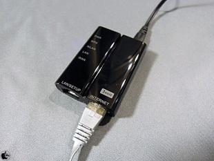 他社製品同様に、microUSBポートに電源をさし、有線LANケーブルを青いEthernetポートに接続するだけで完了します。