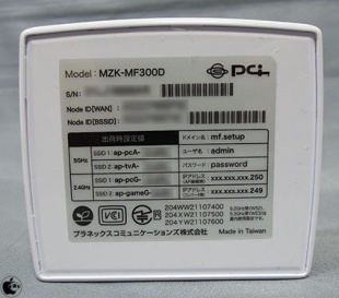 本体底面には、2.4GHz帯/5GHz帯のアクセスポイントと、Safariからアクセスして設定変更するためのID/パスワードが記載されています。
