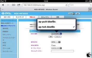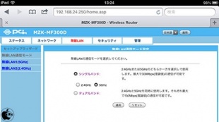 フレッツ・光プレミアムの配下に設置し、iPad (4th generation)からMZK-MF300Dの5GHz帯にアクセスしてみました。
