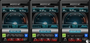 WN-G300DR環境と、MZK-MF300Dの2.4GHz/5GHzデュアルモード(5GHz接続)、5GHzシングルモードの3パターンで計測してみた結果、5GHzシングルモードで利用した場合が最もパフォーマンスは良くなるようです。