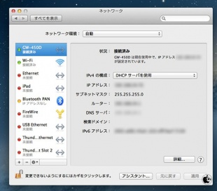続いて、OS Xの設定>ネットワークで、GW-450Dの優先順位を最上段に移動します。