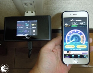 iPhone 6を接続して計測した結果は「下り15.50Mbps/上り7.21Mbps」でした。