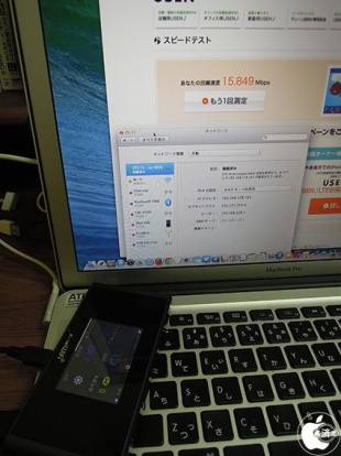 Macの場合、MacBook Air (Mid 2013)以降、MacBook Pro (Retina, Late 2013)以降で、IEEE 802.11acに対応していますが、micro-USBケーブルを使用して接続すると、USBモデムとしても利用出来ます。