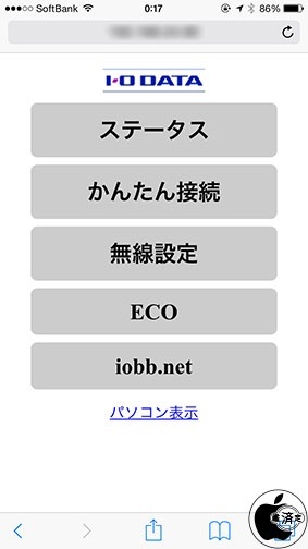WN-AC1600DGR3は、Safariからアクセスすることで、各種設定を行なうことが可能です。