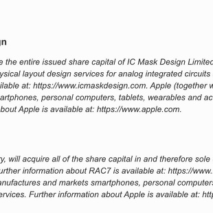 EUの公開情報から、Appleがアナログ&RFレイアウトサービス専門企業IC Mask Designを買収したことが明らかに