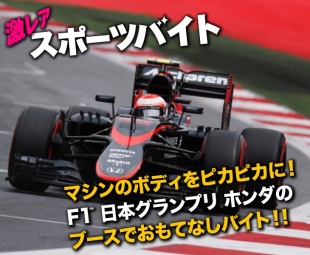 [激レアバイト]マシンのボディをピカピカに!F1(日本グランプリ)展示ブースでおもてなしバイト」を公開しています。